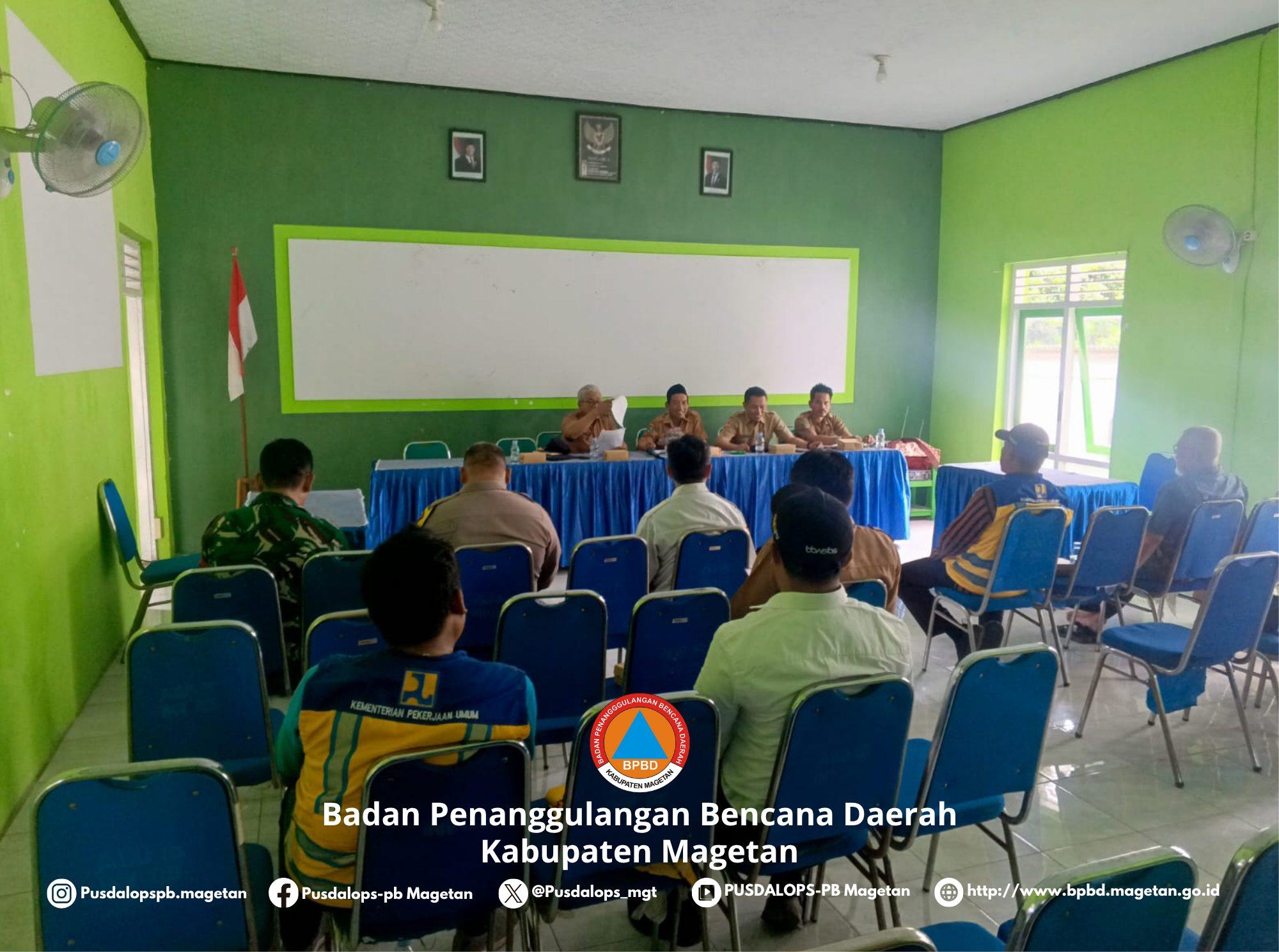 MAGETAN – BPBD Kabupaten Magetan melalui Bidang Kedaruratan dan Logistik (KL) menghadiri rapat lintas dinas dan instansi secara bersamaan akan dilaksanakan peninjauan lokasi terkait rencana pemasangan bronjong sungai di Desa Mantren, Kecamatan Karangrejo, pada Selasa (4/11/2025).