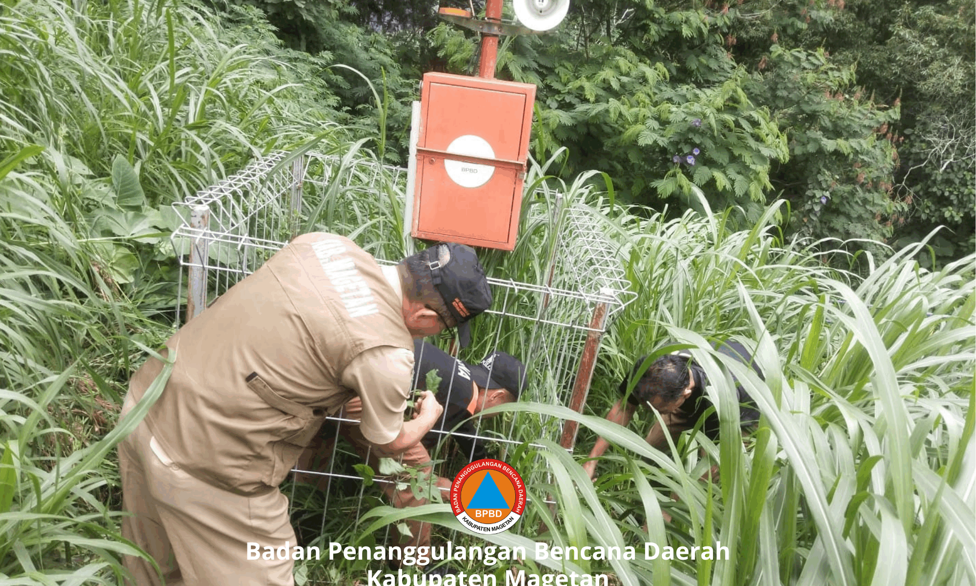 Magetan, 4 November 2025 – Badan Penanggulangan Bencana Daerah (BPBD) Kabupaten Magetan melalui Bidang Pencegahan dan Kesiapsiagaan melaksanakan kegiatan pembersihan dan pengecekan rutin alat Early Warning System (EWS) di wilayah Kecamatan Poncol pada Selasa (4/11).